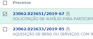 Marque a caixa referente ao processo com o qual deseja fazer a operação de adição do documento.