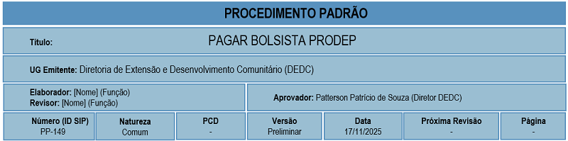 A documentação definitiva do processo de trabalho está sendo preparada junto à UG Emitente.